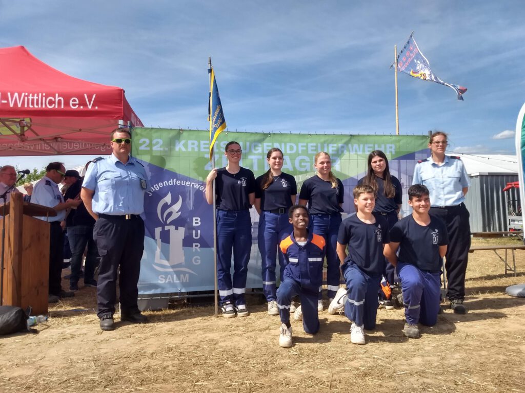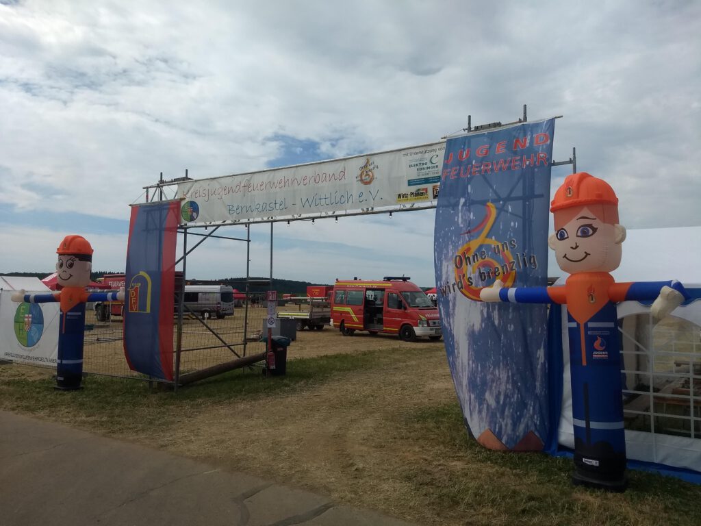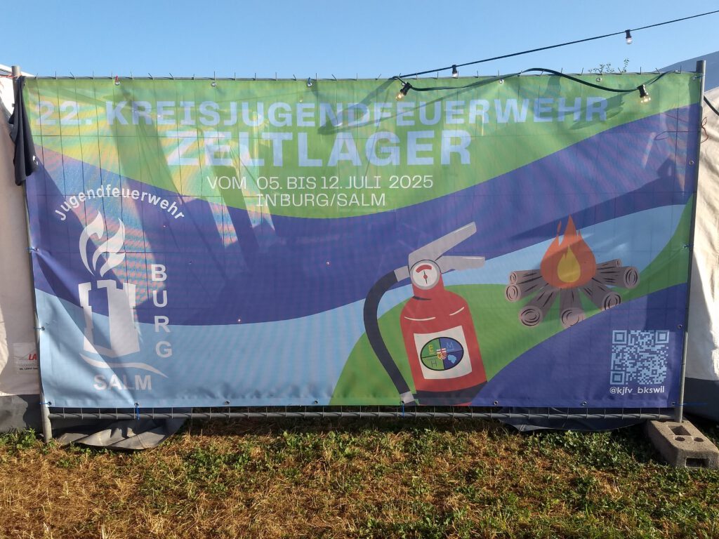 Bereits im Jahresrückblick 2024 hatten wir auf auf das Highlight dieses Jahres hingewiesen. Vom 05.07. – 12.07.2025 waren wir Gastgeber für das 22. Kreisjugendfeuerwehrzeltlager. Nachdem bereits vor 30 Jahren (1995) das Zeltlager in Burg/Salm stattgefunden hat, wollten wir es dieses Jahr nochmal versuchen. Und so standen die Sommermonate ganz im Zeichen dieses Events. Nach Monaten der Planung und Vorbereitung starteten wir im Juni mit dem Aufbau. Innerhalb wenigen Tagen errichteten wir am Ortsrand einen Zeltplatz für über 500 Teilnehmer. Mit der Unterstützung zahlreicher Helfer wurde die benötigte Infrastruktur geschaffen: Wasser- und Abwasserleitungen wurden verlegt, Stromanschlüsse hergestellt und Kabel gezogen, Zelte aufgebaut, eine Feuerstelle errichtet, Fahnenmasten aufgestellt, usw.