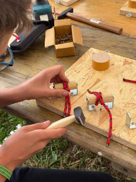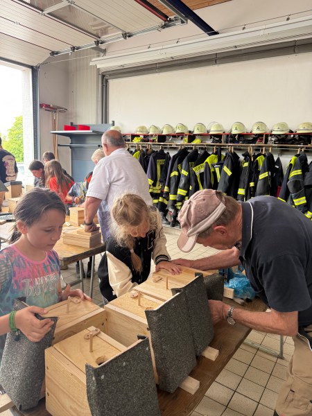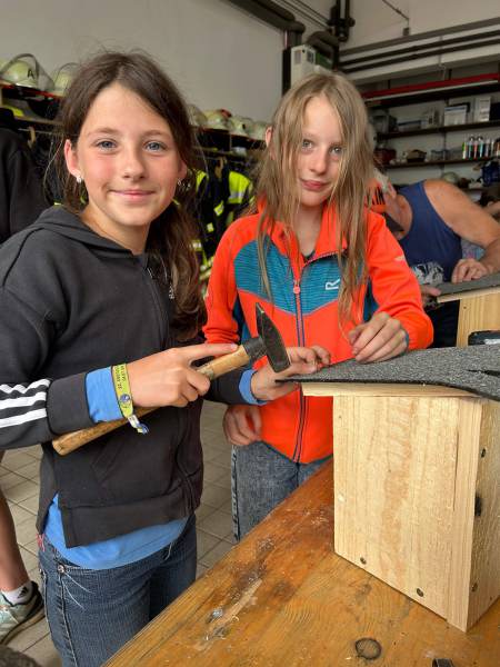 Für diejenigen, die keine Abzeichen erwerben konnten oder wollten, fanden zahlreiche Workshops statt. So wurden Nistkästen oder Knotenbretter gebaut, der Imker war zu Besuch, die Hundestaffel präsentierte, es wurden Besichtigungen der Firma Raskopp, Weber Stahl und der Kläranlage angeboten, es wurde getanzt, Feuer gelöscht und vieles mehr. Ein abwechslungsreiches Angebot, das für jeden etwas zu bieten hatte: