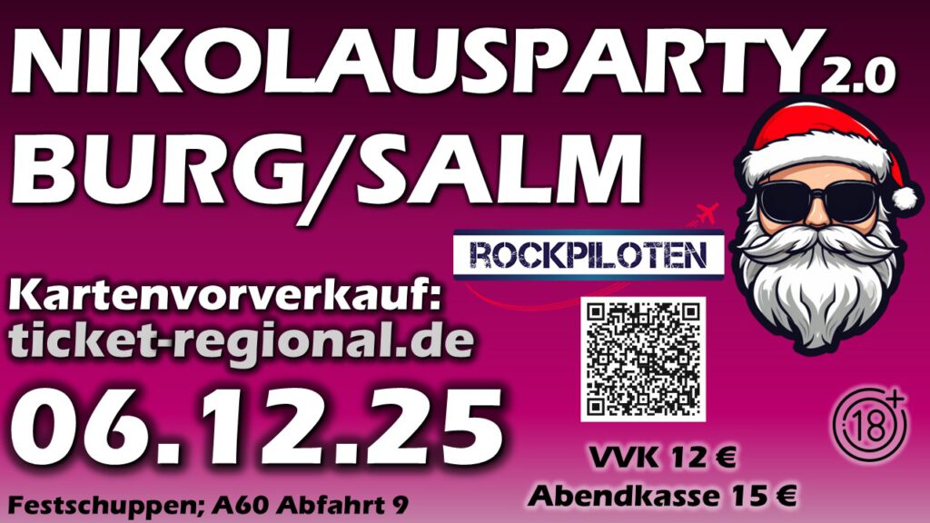 Bittet beachtet das veränderte Konzept: Einlass erst ab 18 Jahren! Karten gibt es im Vorverkauf auf Ticket-Regional oder für Spontane an der Abendkasse.