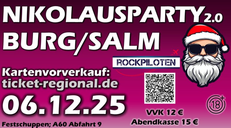 Bittet beachtet das veränderte Konzept: Einlass erst ab 18 Jahren! Karten gibt es im Vorverkauf auf Ticket-Regional oder für Spontane an der Abendkasse.